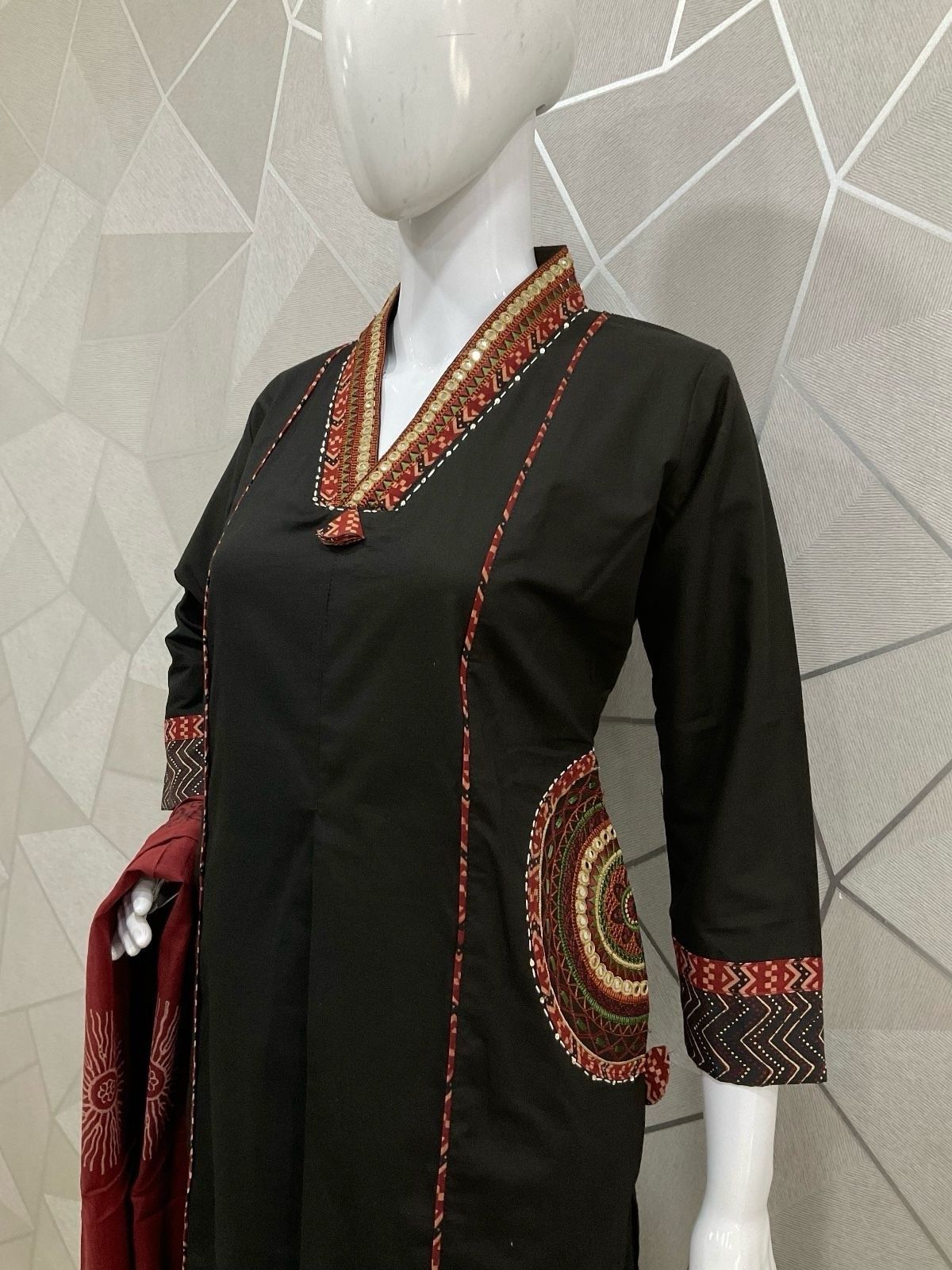 Sleeves: 3/4th Sleeves with embroidered cuffs